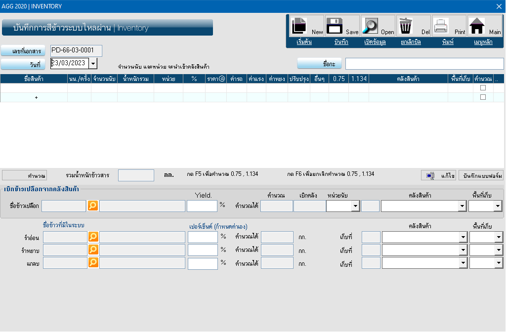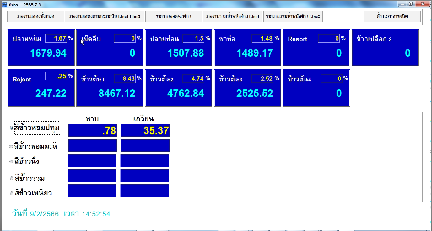โปรแกรมเก็บข้อมูลการผลิต คำนวณเปอร์เซนต์การสีข้าวและ เข้าระบบคลังสินค้า |