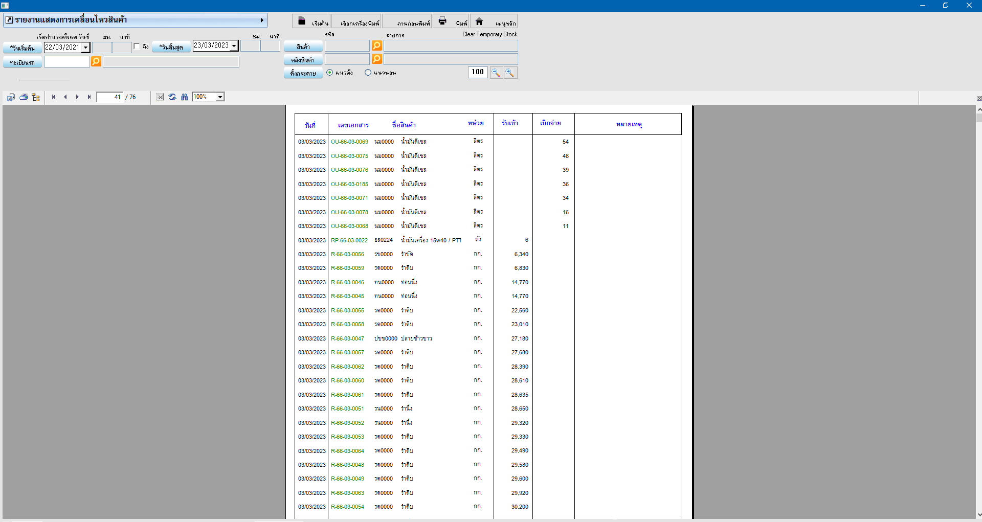 รายงานเคลื่อนไหวแยกตามวันที่ แสดงรายการสแกนรับ เบิกสินค้า ในแต่ละวัน ช่วยให้ตรวจสอบคลังสินค้าได้ แม่นยำ และรวดเร็วมากขึ้น