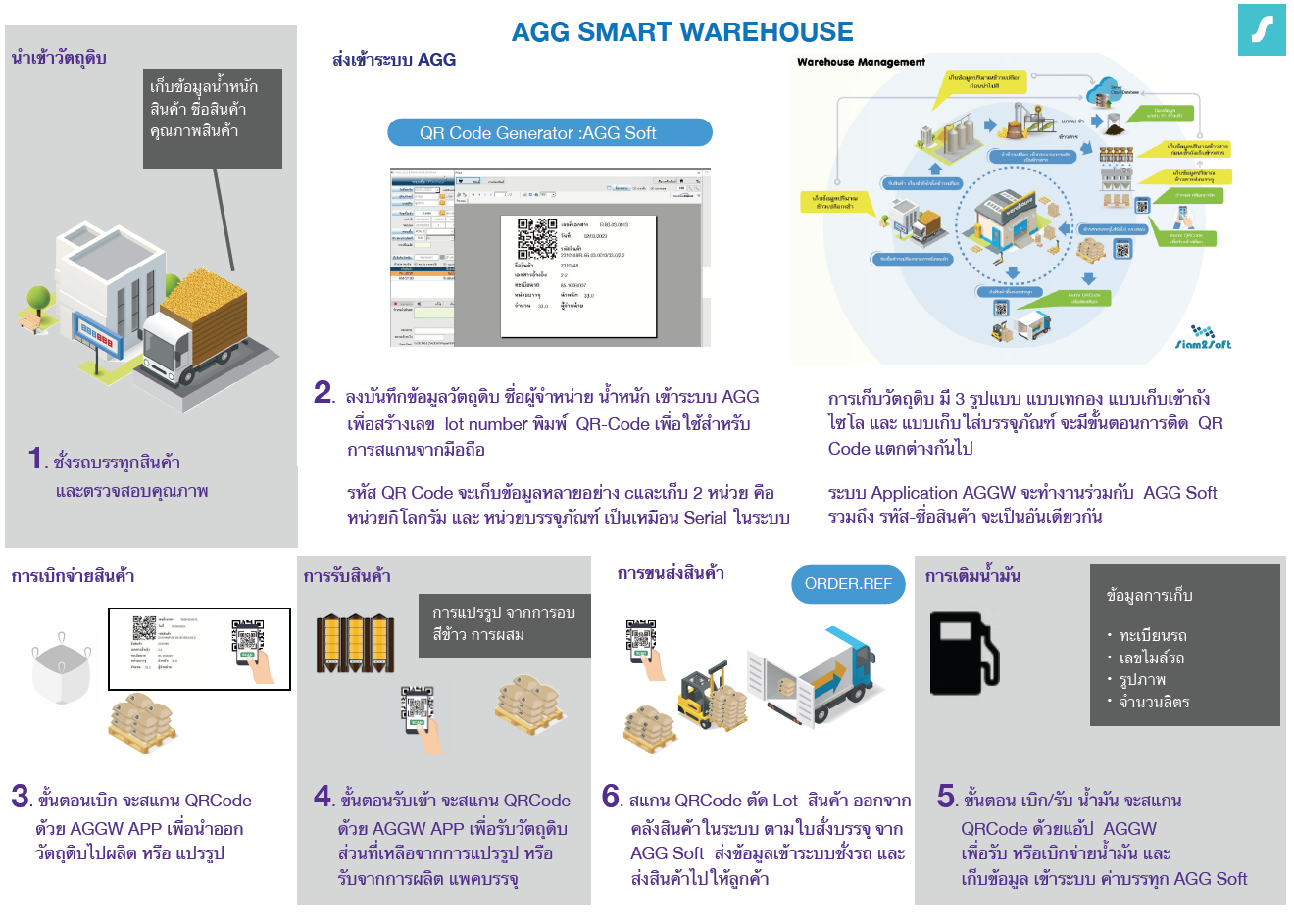 การสร้าง QRCode /Lot เพื่อใช้ติด Tag ที่ จัมโบ้ หรือกระสอบ เริ่มจากระบบการรับสินค้า และวางแผนการผลิต Tag จะใช้สำหรับมือถือ สแกน เบิกจ่าย