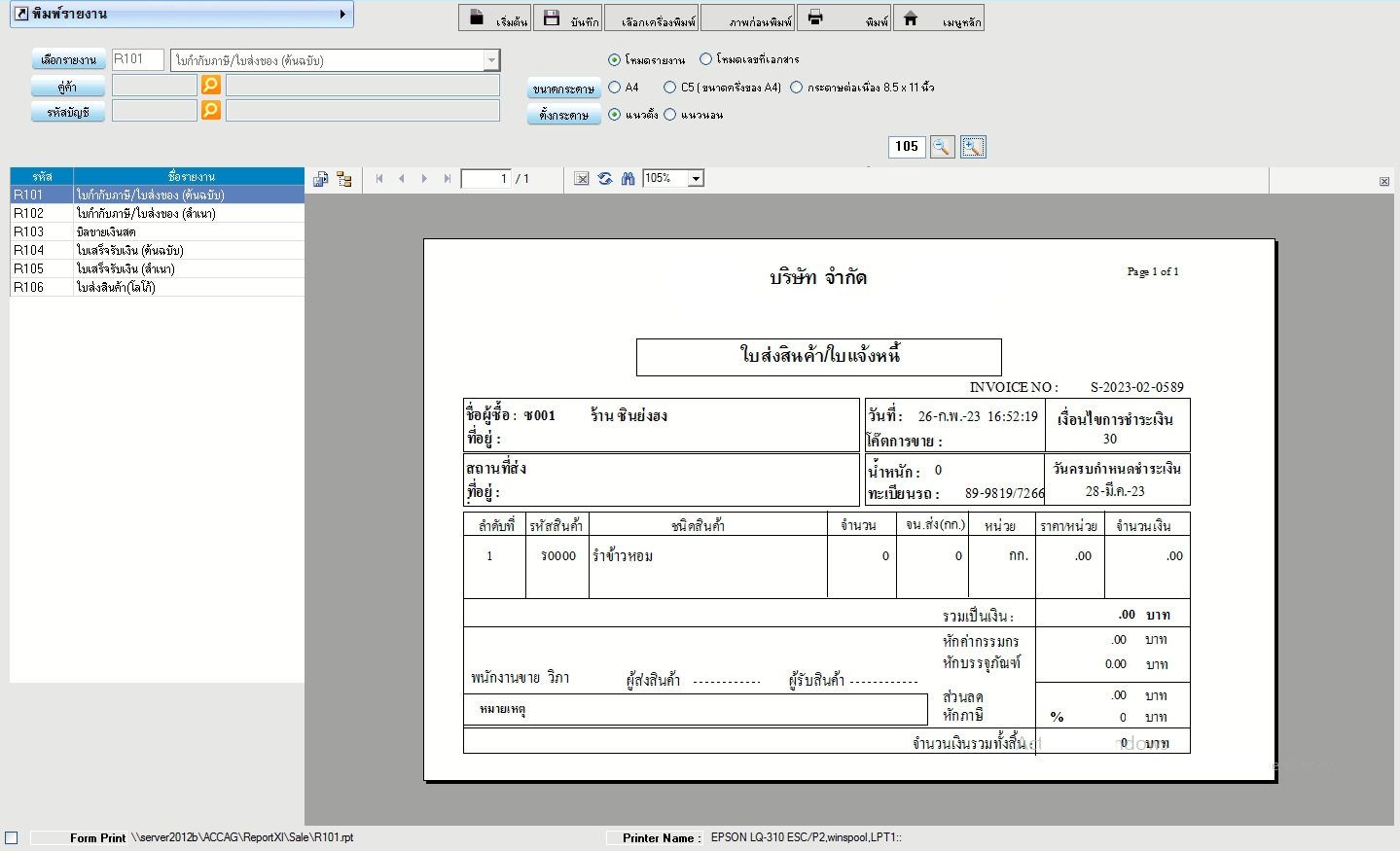 ใบส่งสินค้า (S)