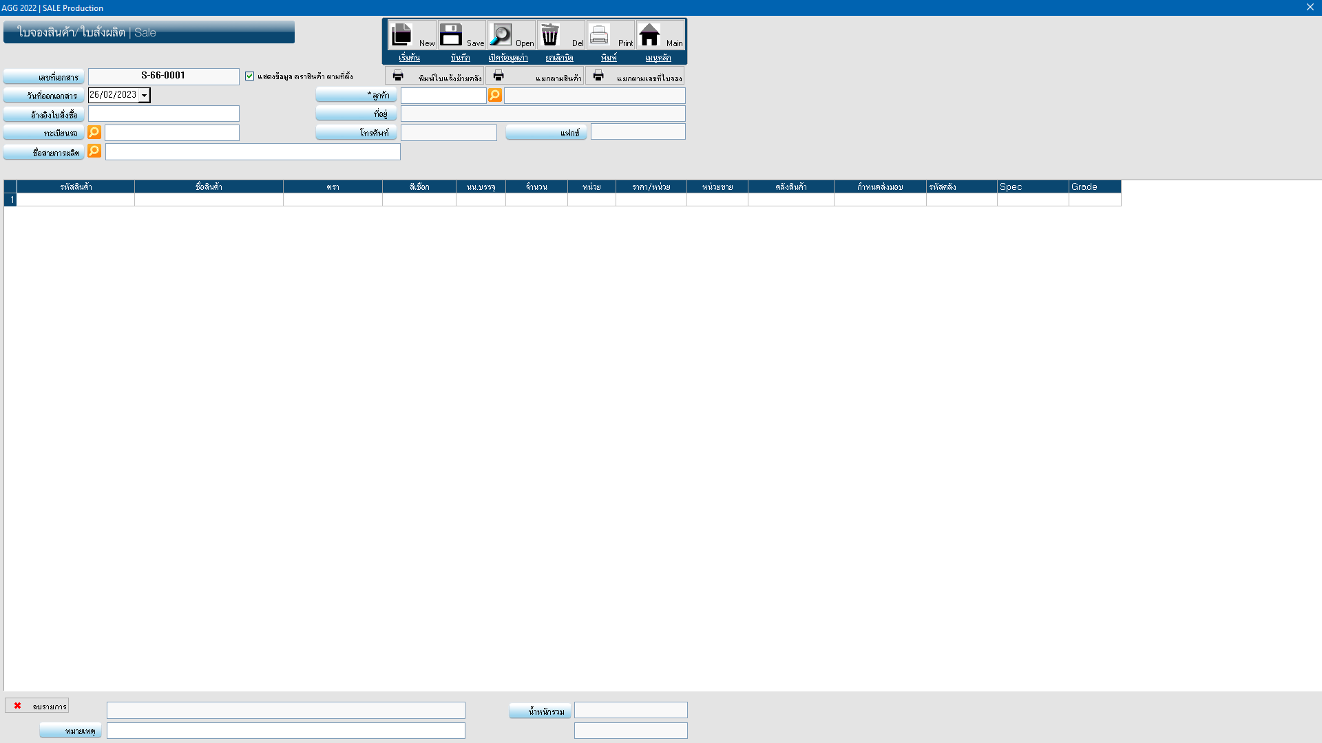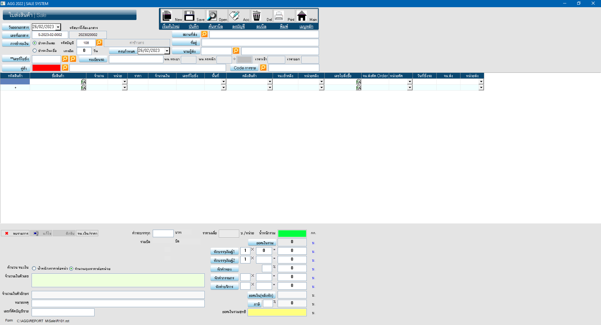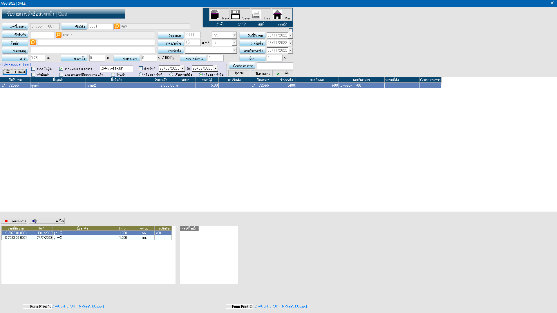 เมนูหลัก ระบบขาย ประกอบด้วย ใบส่งสินค้า บิลขาย ใบรับการสั่งซื้อล่วงหน้า ใบจองสินค้า