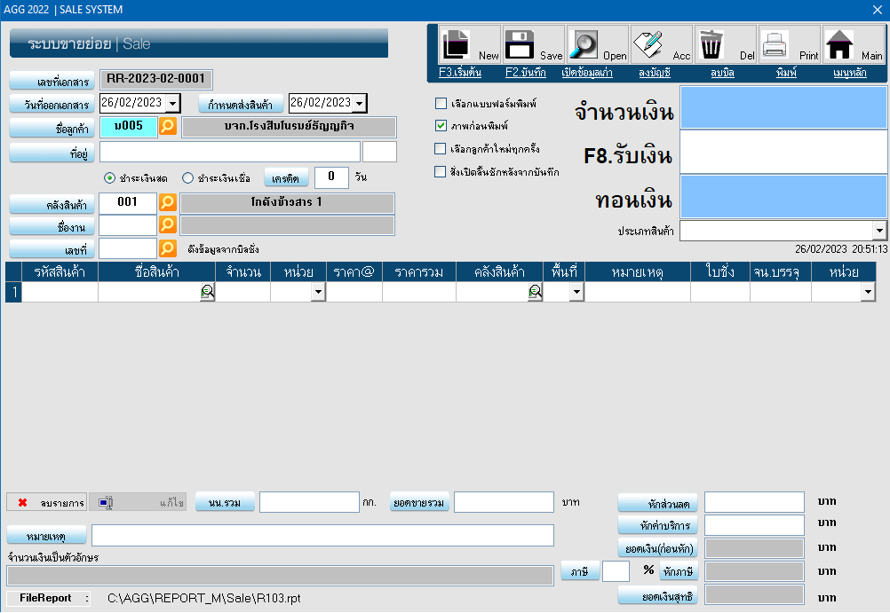 ระบบขาย POS (RR) ขายข้าวสาร ปุ๋ย ใช้กับสินค้าที่มีบาร์โค้ด เครื่องอ่านบาร์โค้ด ตัดจำนวนสินค้าตามคลังสินค้าที่ระบุ