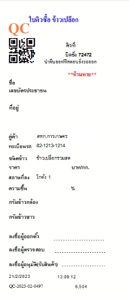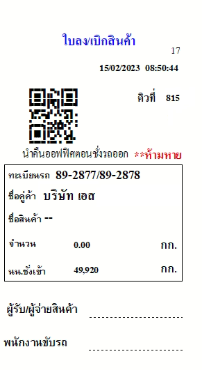 พิมพ์ใบคิวชั่งรถเข้าออก. ป้องกันความผิดพลาดในการชั่งรถเข้าออกสลับคัน หรือ กรณ๊รถไม่ได้ชั่งเข้า แล้วไปลงข้าวก่อน
