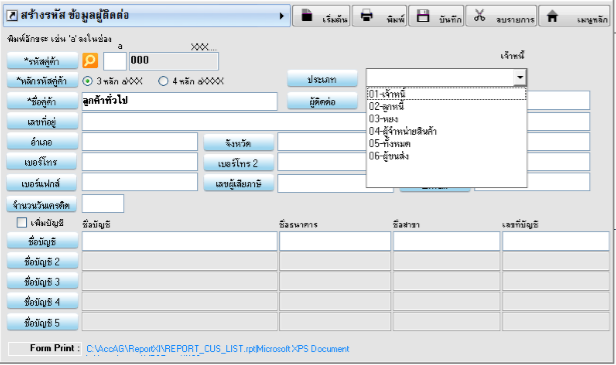 กำหนดรายชื่อผู้ติดต่อ ใช้ระบุรายละเอียดข้อมูลลูกค้า ผู้จำหน่าย หรือผู้ขนส่ง .เพื่อการออกบิลเอกสารต่างๆ