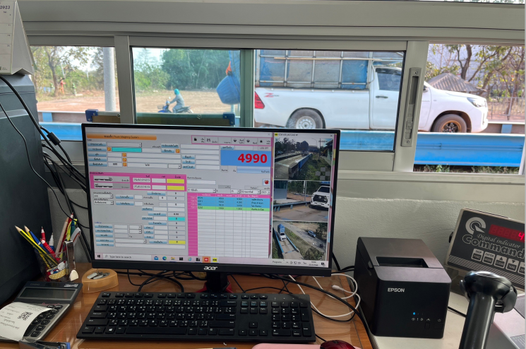 2.ชั่งรถเข้าเก็บข้อมูล ชื่อลูกค้า สินค้า ราคา และน้ำหนัก เข้าระบบ พิมพ์ใบลงสินค้า